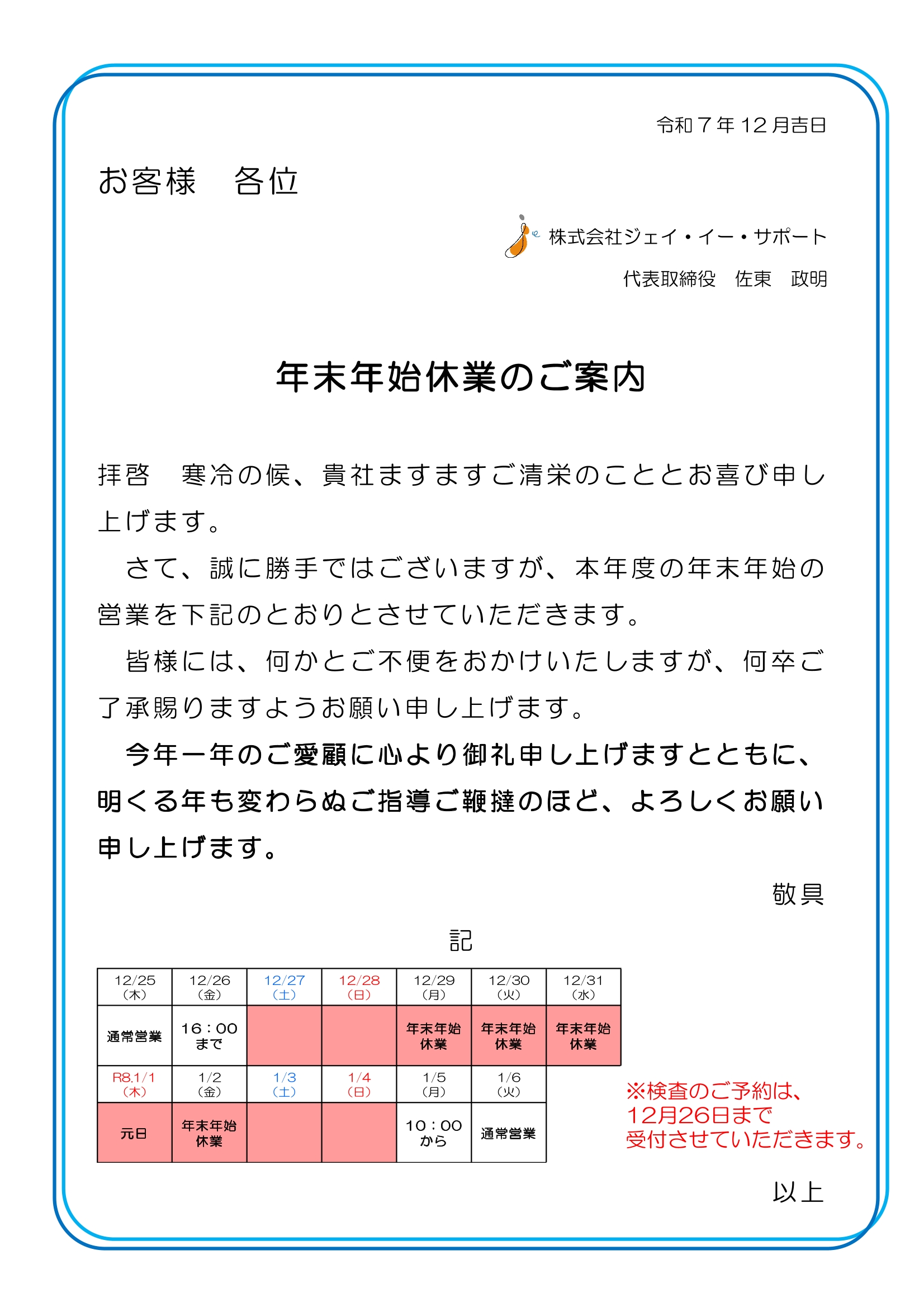 年末年始休業のご案内(令和7年12月27日(土)から令和8年1月4日(日)) (2025-12-04)